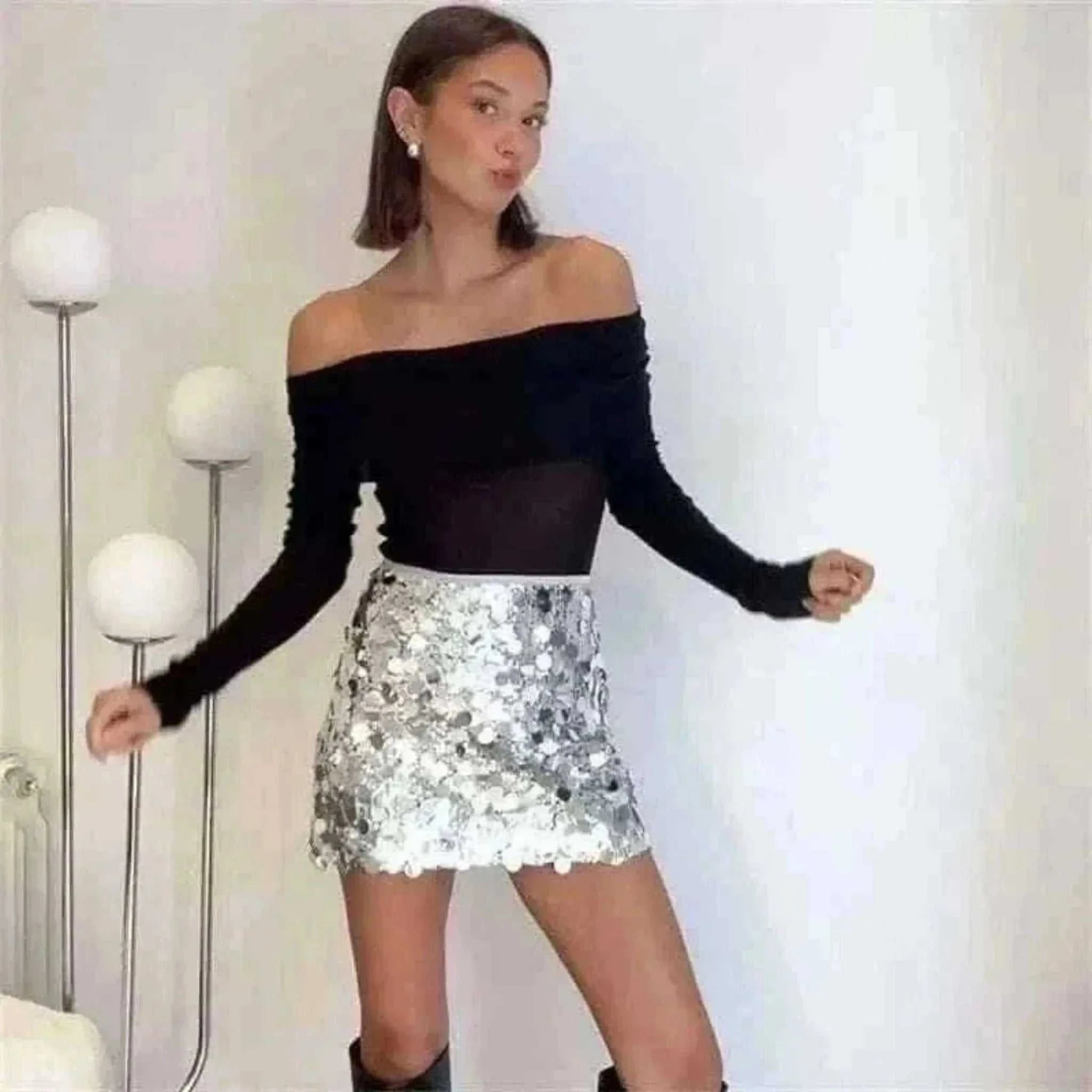 Step into effortless elegance with the TRAF Silver Sequin High-Waist Mini Skirt for Women, designed to flatter your figure with its slim fit silhouette. Made from a premium blend of polyester this skirt offers the perfect balance of comfort, stretch, and style.